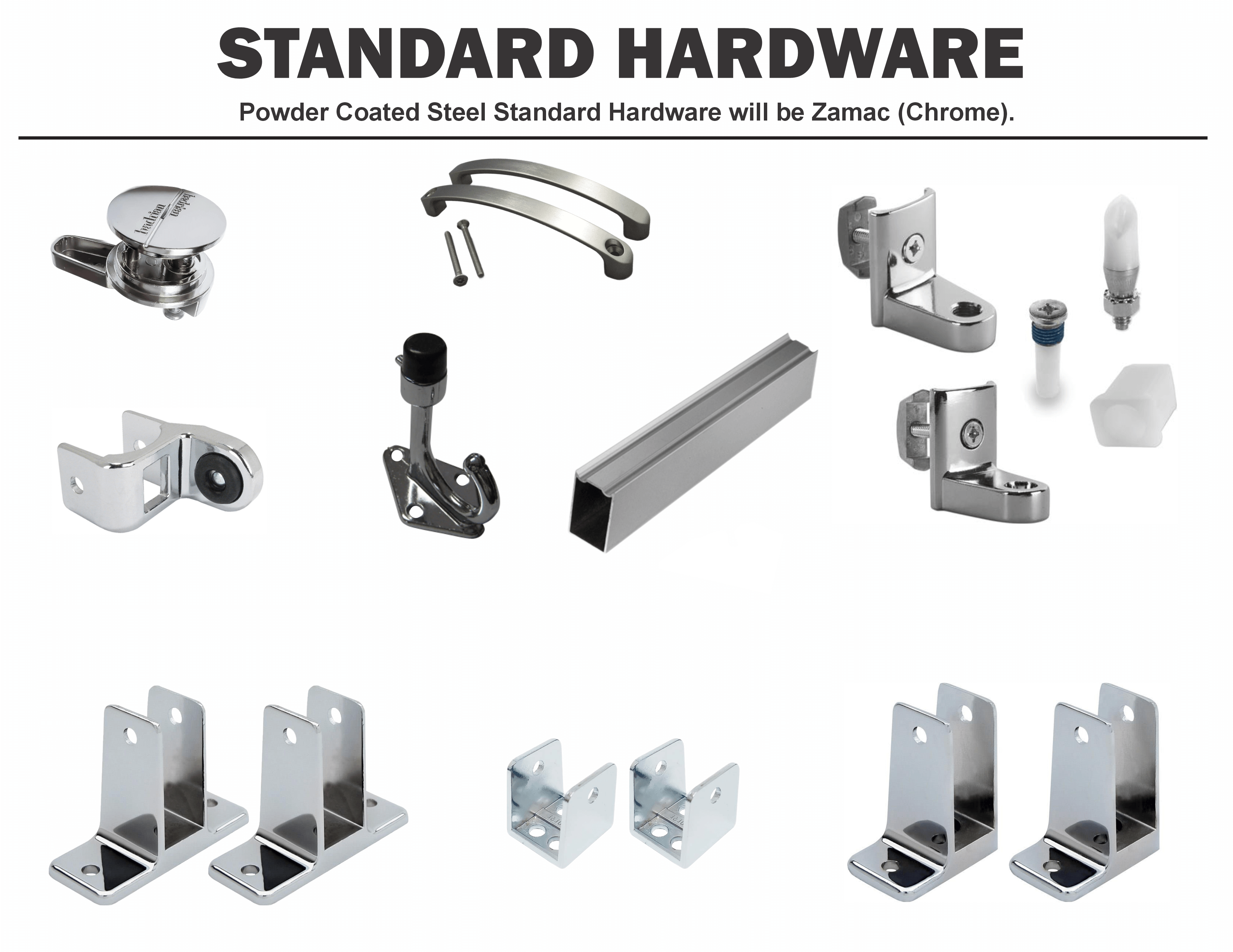 Powder coated steel bathroom stalls are our most popular and lowest priced material available. This material is lightweight, extremely durable, and available in a large selection of colors. Offering the best value in the industry, powder coated toilet partitions address the key areas of fire resistance, durability, high recycled content, and graffiti resistance – all at an entry-level price! With lightning-fast lead times powder coated steel bathroom partitions are available to meet any deadline. We do offer a 3-year warranty with powder coated steel metal toilet partitions. Ready to ship in 48 hours. No one will beat our quick quotes, low pricing, and fast shipping!