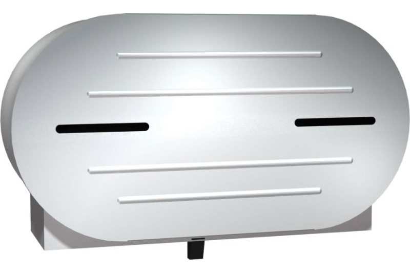 • Surface mounted double jumbo roll toilet tissue dispenser.