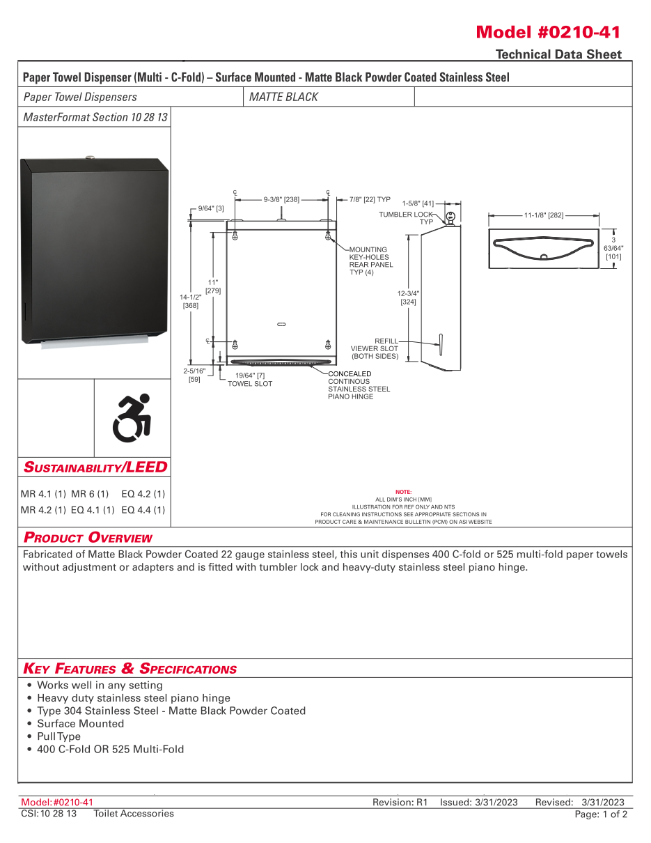 ASI 0210-41 – Paper Towel Dispenser – Surface Mounted