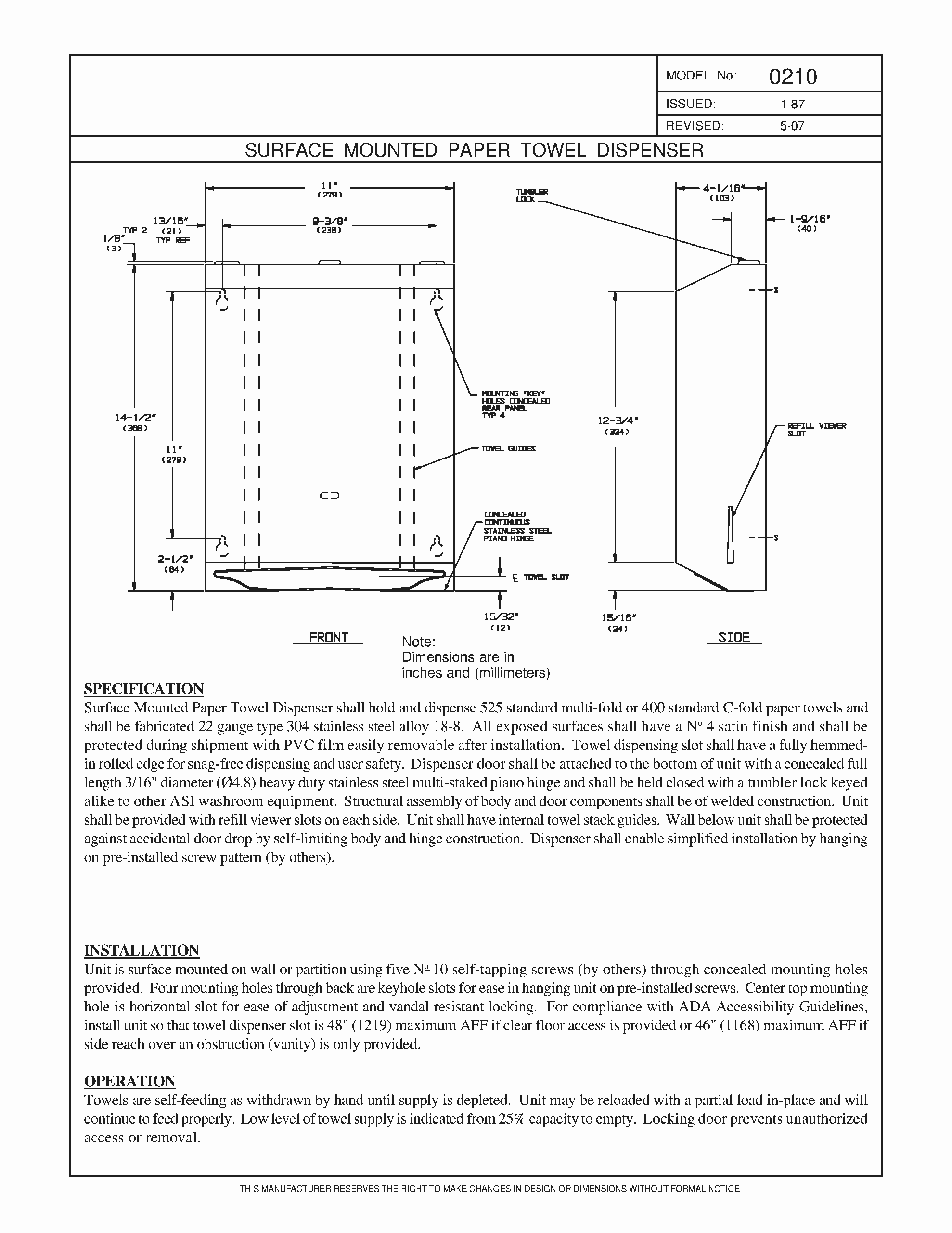 ASI 0210 – Paper Towel Dispenser – Surface Mounted