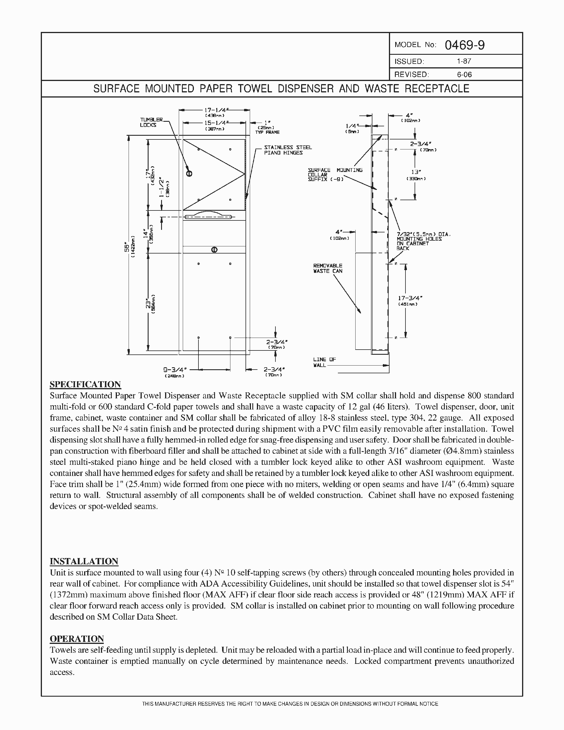- ASI 0469-9 Surface Mounted Paper Towel Dispenser and Waste Receptacle.