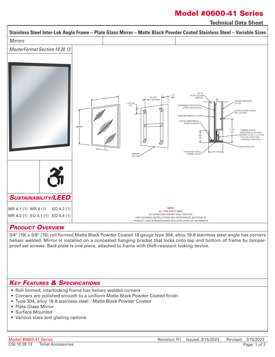 ASI 0600-41 – Angle Frame Mirror ( Welded Corners ) Matte Black